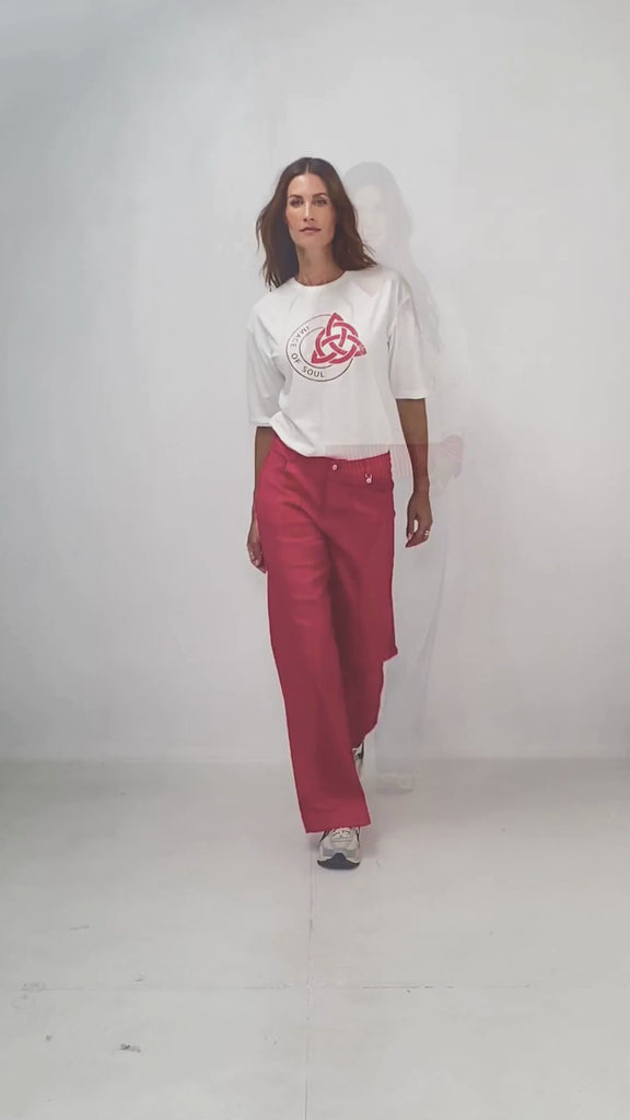 Rode wide leg broek met steekzakken aan de voorkant en schuin afgewerkte zakken aan de achterkant. De broek is afgewerkt met subtiele Zizo-details, waaronder het logo, voor een stijlvolle touch.